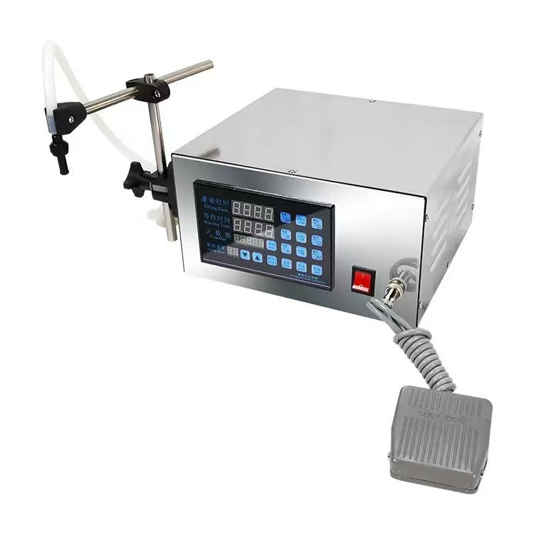 UT-130 is a micro-computer controlled liquid filling machine driven by a magnetic pump, designed for small-batch production of flowing liquids (pharmaceutical, chemical, food, beverage, cosmetics). It supports a filling range of 5-3500ml, with max flow 3.2L/min and ±1% repeat accuracy. The magnetic pump design prevents liquid leakage, and the 316L stainless steel pump head ensures resistance to acid, alkali, and corrosion.